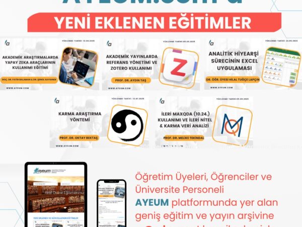 Değerli kullanıcılarımız, AYEUM veri tabanında yeni yüklenen dersler hakkında sizleri bilgilendirmeye devam ediyoruz. En...